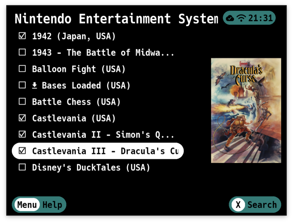 Up/Downto scroll through gamesLeft/Rightto skip entire pagesAto select a single gameSelectto enter multi-select mode, then useAto select/deselect gamesXto open the search keyboardBto go back