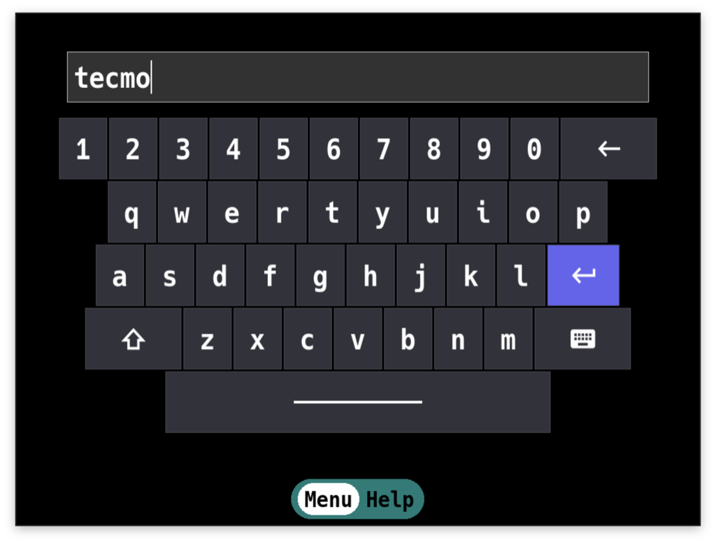 Password), pressing A will open an on-screen keyboard.